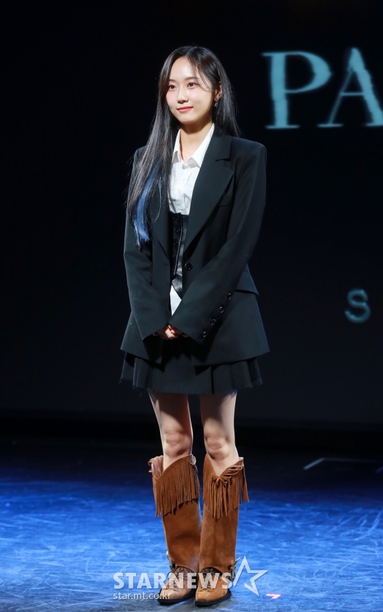 가수 서리(SEORI)가 22일 오전 서울 마포구 구름아래 소극장에서 진행된 신곡 '캔 스탑 디스 파티'(Can’t stop this party) 발매기념 음감회에 참석해 포즈를 취하고 있다.