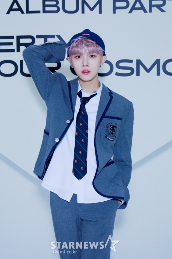 그룹 크래비티(CRAVITY) 성민이 22일 오후 온라인 생중계로 진행된 정규앨범 파트 2 'LIBERTY: IN OUR COSMOS'(리버티: 인 아워 코스모스) 발매기념 기자간담회에 앞서 포즈를 취하고 있다.
