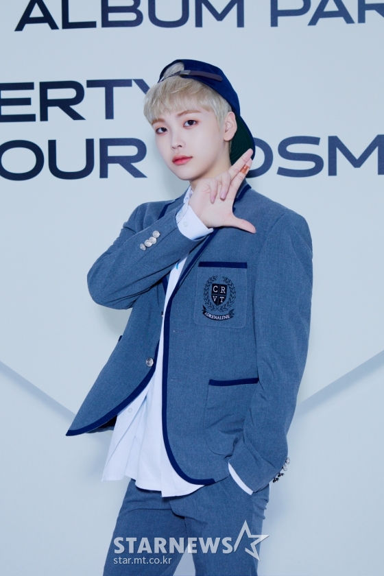 그룹 크래비티(CRAVITY) 형준이 22일 오후 온라인 생중계로 진행된 정규앨범 파트 2 'LIBERTY: IN OUR COSMOS'(리버티: 인 아워 코스모스) 발매기념 기자간담회에 앞서 포즈를 취하고 있다.