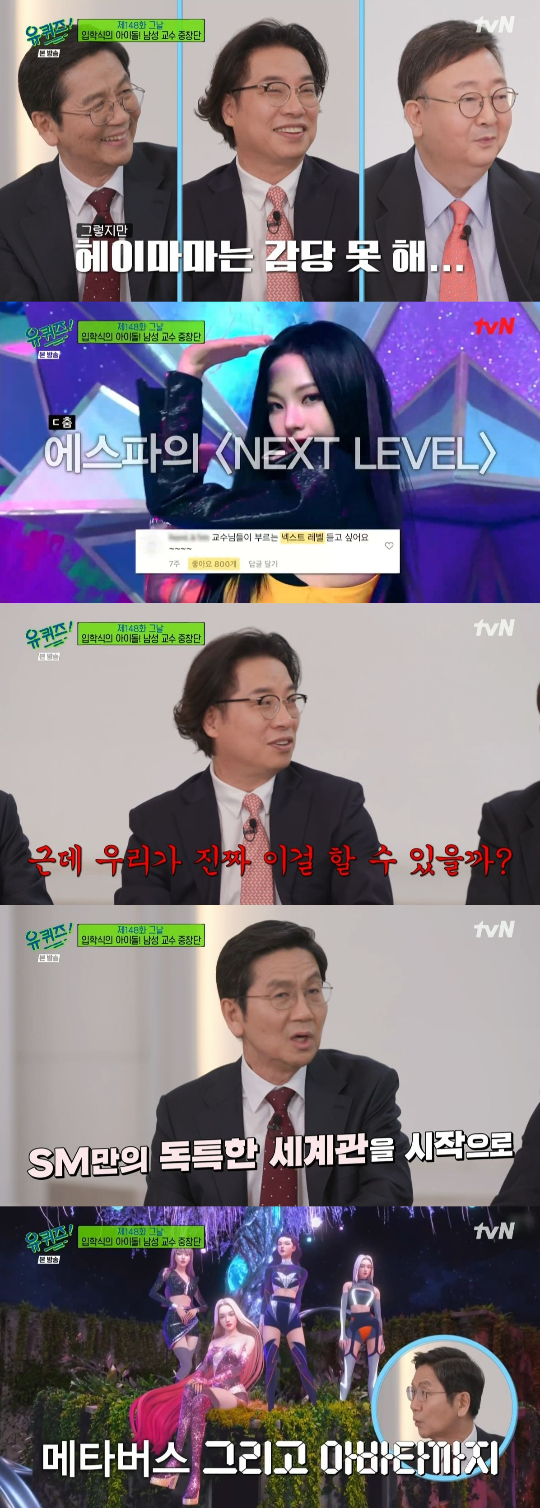 '유 퀴즈 온 더 블록'에서 이화여대 남성 교수 중찬단이 입학식 곡으로 '넥스트 레벨'을 선택한 일화를 공개했다.