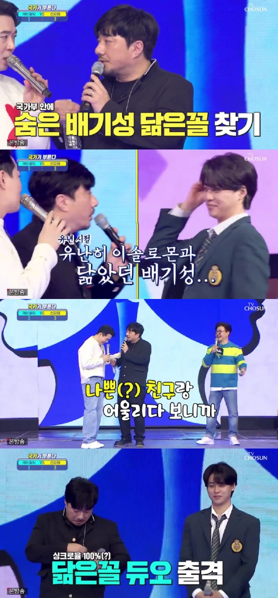 7일 방송된 TV CHOSUN 예능프로그램 '국가가 부른다'(이하 '국가부')에서는 가수 배기성, 이세준, 홍경민, 고유진, 홍대광, 정세운이 출연해 다채로운 듀엣 무대와 대결을 펼쳤다.