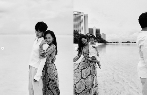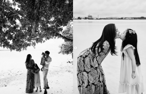 공개된 사진에는 아름다운 해변에서 남편 기태영, 두 딸과 함께 즐거운 시간을 보내고 있는 유진의 모습이 흑백으로 담겨 있다. 유진은 딸과 턱을 대고 다정한 분위기를 연출하는가 하면, 기태영에게 백허그를 하며 달콤한 애정을 표현했다.