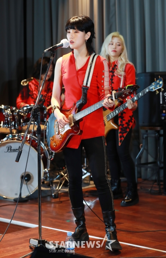 밴드 '워킹 애프터 유'(Walking After U)가 13일 오후 서울 강남구 한 카페에서 진행된 10주년 기자간담회에서 신곡을 선보이고 있다.