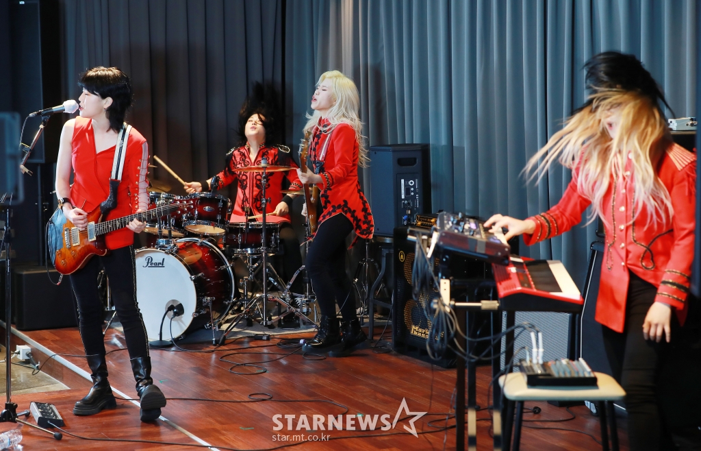 밴드 '워킹 애프터 유'(Walking After U)가 13일 오후 서울 강남구 한 카페에서 진행된 10주년 기자간담회에서 신곡을 선보이고 있다.