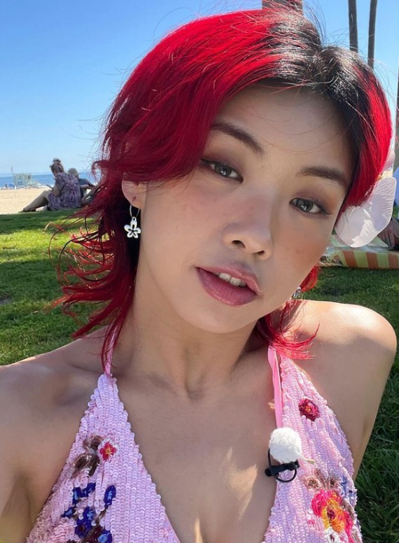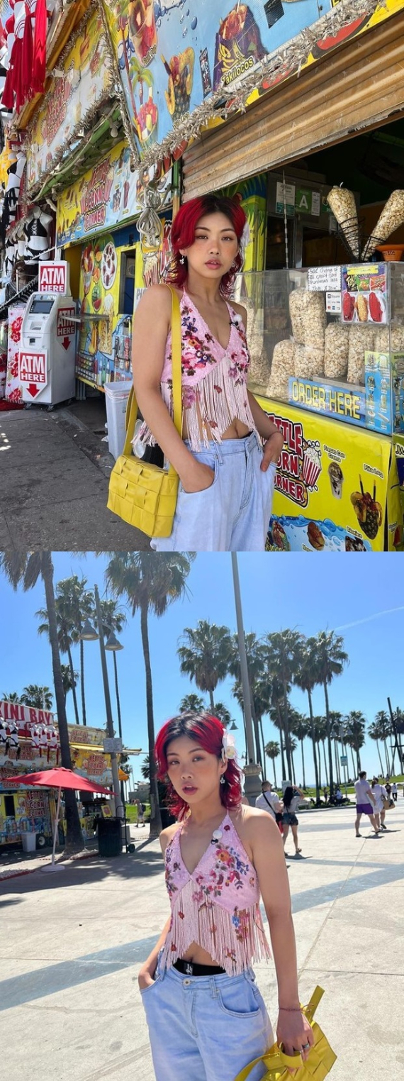 공개된 사진 속 아이키는 꽃무늬가 수가 놓인 핑크 탑브라에 펑퍼짐한 청바지를 입고 포즈를 취하고 있다. 아이키의 패션과 LA의 배경이 찰떡으로 어우러져 시선을 사로잡았다.