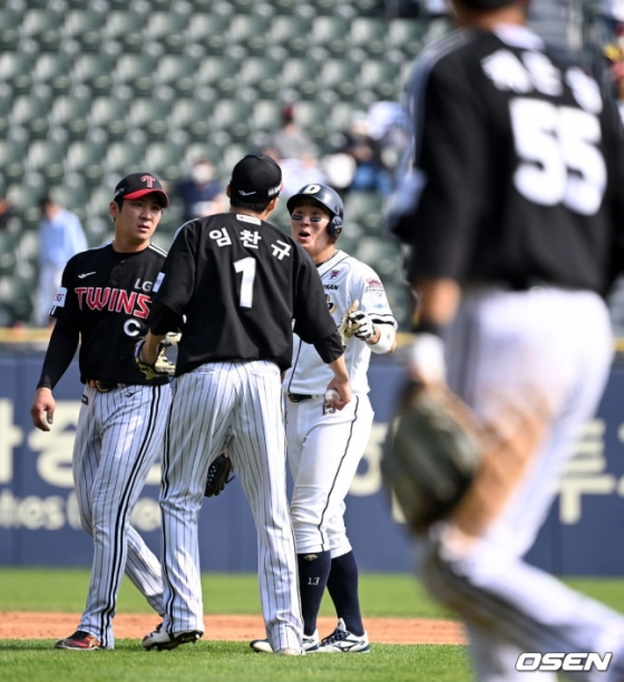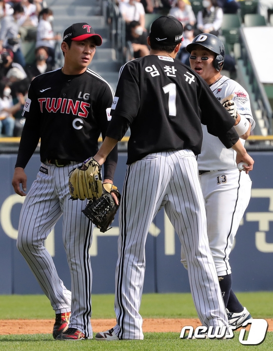 세리머니 후 임찬규는 곧장 2루 쪽으로 달려가 근처에 있던 허경민과 대화를 나눴다. 둘은 무언가 짧게 이야기를 나눈 뒤 각자 더그아웃으로 향했다. 둘의 표정에서도 큰 갈등은 느껴지지 않았다. 그럼 둘은 어떤 이야기를 나눴던 것일까.