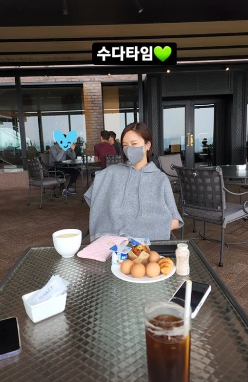 황정음은 24일 자신의 인스타그램 스토리에 "수다 타임"이라는 글과 사진을 게재했다. 공개 된 사진 속 황정음은 한 호텔의 카페에서 시간을 보내고 있다. 편안한 옷차림으로 자유로워 보이는 모습이다.