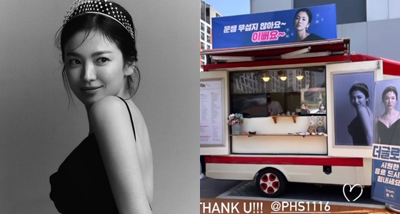 송혜교가 같은 소속사 후배인 박형식에게 커피차를 받았다.
