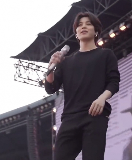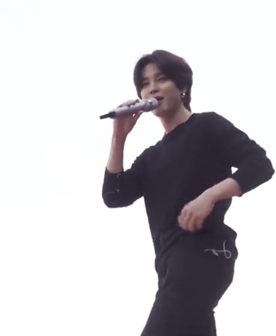 둘째날 이어진 사운드 체크 무대에서 지민은 한층 긴장이 풀린모습으로 편안하게 팬들을 맞이했다.