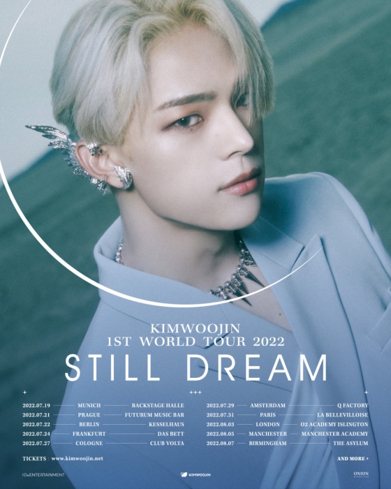 소속사 10x 엔터인먼트는 지난 2일 공식 홈페이지와 SNS를 통해 김우진의 '스틸 드림 월드투어'(KIM WOOJIN 1ST WORLD TOUR 2022 'STILL DREAM', 이하 '스틸 드림')의 유럽 일정을 1차로 공개했다. '스틸 드림'의 유럽 공연은 독일, 체코, 네덜란드, 프랑스, 영국 등 5개국에서 총 10회 진행된다.