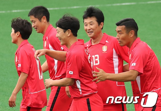 2002 한일월드컵 멤버들은 5일 서울월드컵경기장 보조구장에서 열린 '월드컵 레전드 올스타전'에서 14세 이하(U-14) 팀에 3-4로 패했다.