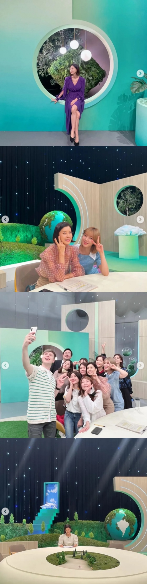 공개 된 사진 속 유선은 '지구 인 더 하우스' 촬영장에서 포즈를 취하고 있다. 또 그녀는 프로그램 출연진들과 함께 사진을 찍으며 종영의 아쉬움을 달래고 있다.