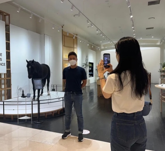 진태현은 10일 자신의 인스타그램에 자신의 사진을 찍는 딸 다비다의 모습이 담긴 사진을 게재했다.