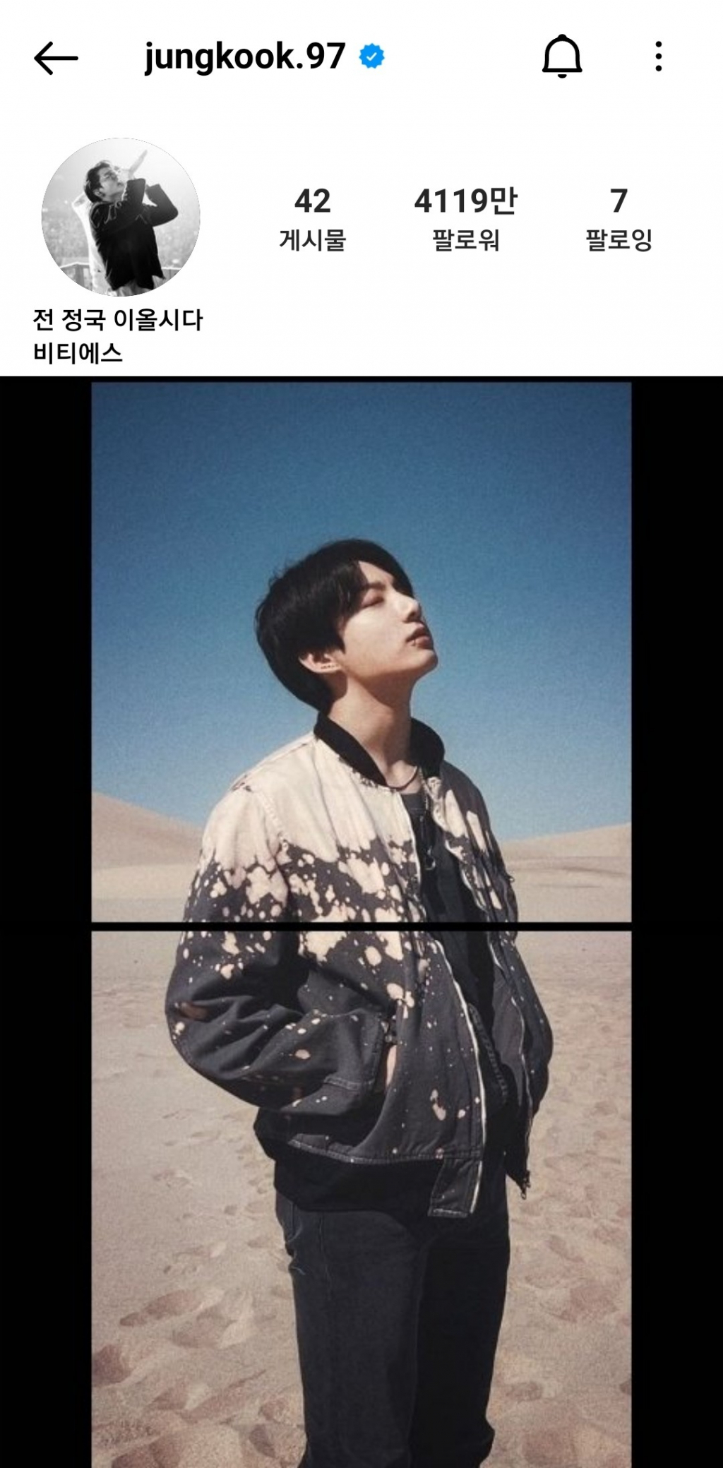한편 정국의 인스타그램 계정은 최근 4100만 팔로워를 돌파하며 '월드 슈스' 면모를 빛냈다.