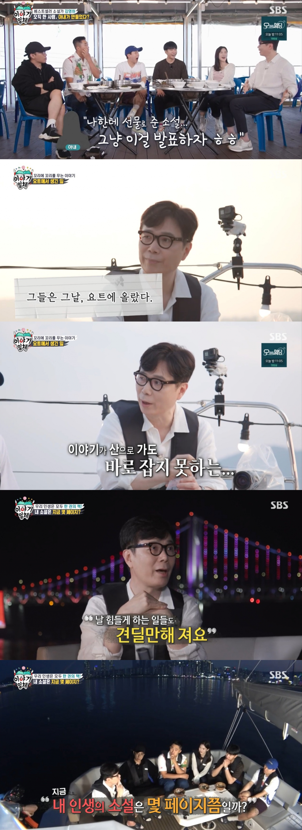 효정은 "요트에서 비둘기 구경을 한다"고 말했고 이에 이승기는 "갈매기가 아니라 비둘기?"라고 물어 웃음을 모았다. 양세형은 "사부님은 글 쓰실 때 순서가 있냐"고 물었고 김영하 작가는 "그냥 쓰기 시작하면 바뀌는 것이다"고 답했다. 양세형이 놀라며 "아무것도 없이요?"라고 묻자 김영하 작가는 "위대한 작품들도 첫 문장을 쓰고 말이 되도록 그 다음 문장을 쓰고 말이 되도록 그 다음 문장을 써서 길게 나오면 글이 되는 것"이라고 전했다