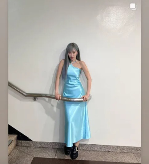 공개 된 사진 속 헤이즈는 하늘색 드레스를 입고 포즈를 취하고 있다. 사진을 자세히 모면 계단의 난간 철 구조물 뒤족에 들어가 있는 모습.