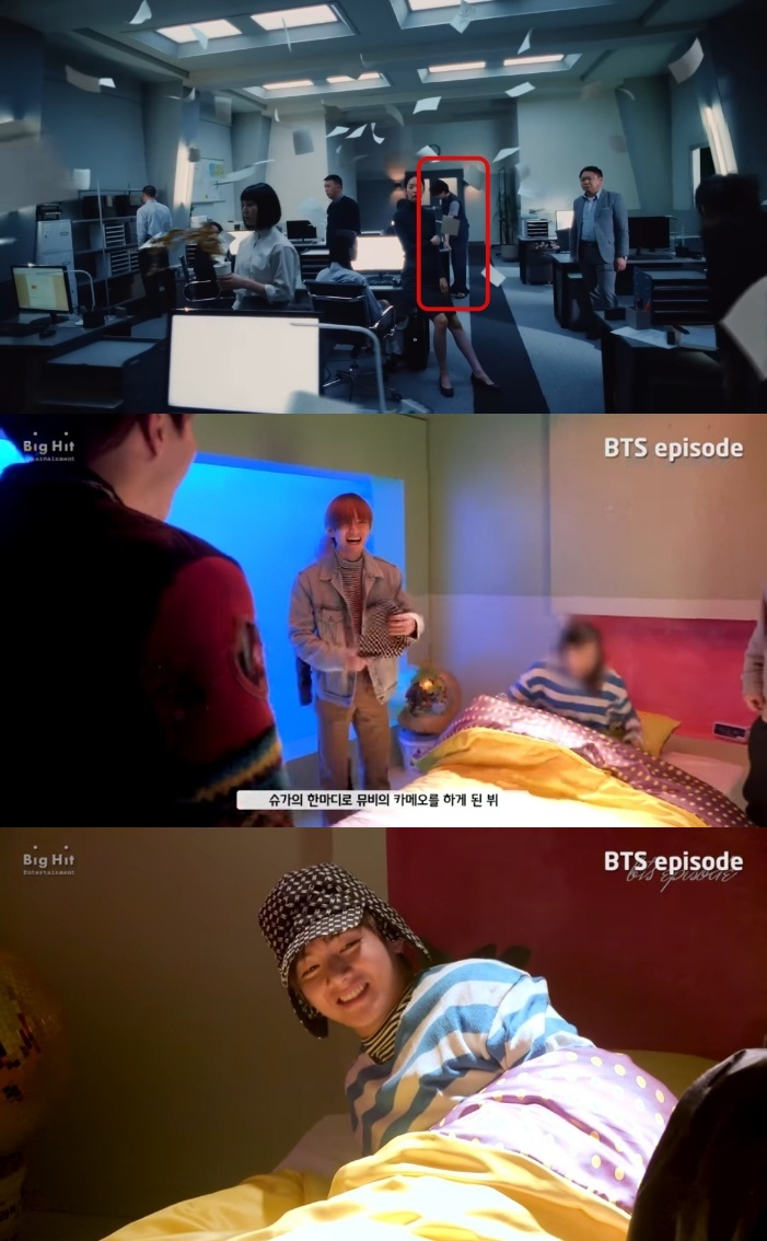 또 팬들이 구석에서 찰나의 순간에 지나가는 뷔를 발견한 사실을 알자 조카가 "아미들 태형이 어찌 찾았냐고.. 아미 대박이라고 조카 지금 웃겨죽음"반응을 보였다고 말하며 뷔와 조카가 뮤직비디오에 출연한 모습이 게재된 인스타그램을 인증샷으로 올렸다.