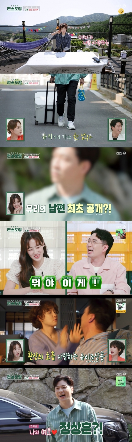 이날 이유리는 캠핑 분위기의 식탁을 꾸미며 '남편'을 기다렸다. 이유리는 "오늘 좀 이따가 너무 사랑하는 남편이 온다"라고 말해 호기심을 자극했다. 류수영은 "남편 나오는 거에요?"라고 물었고, 붐은 "최초 공개에요?"라며 기대했다.