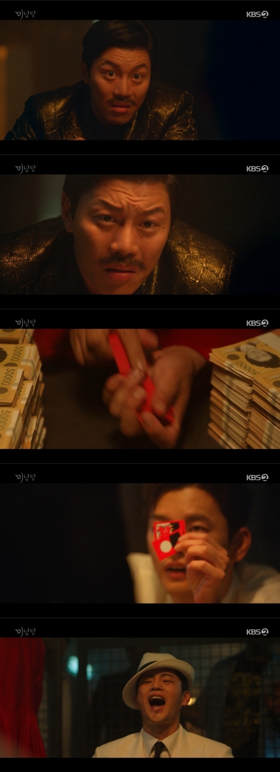26일 오후 방송된 KBS 2TV 월화드라마 '미남당'에서는 남한준(서인국 분)이 조직 폭력배 보스 대통(음문석 분)과 도박판에서 숨 막히는 대결을 벌이는 모습이 담겼다.