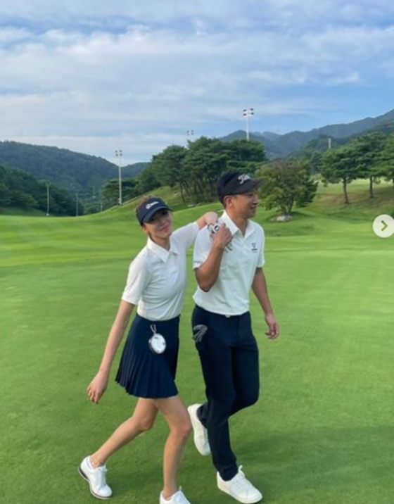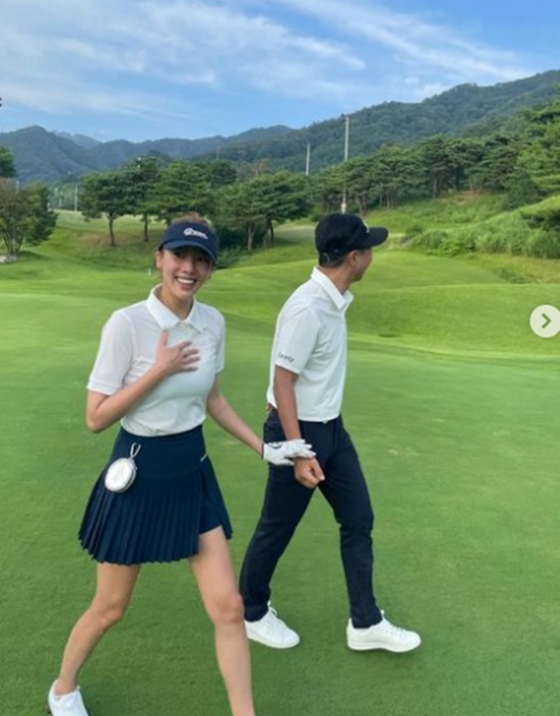손담비는 27일 자신의 인스타그램에 "너무 더웠지만 신났어"라는 글과 하트 이모티콘을 게재했다. 공개 된 사진 속에는 함께 골프장에서 골프를 즐기는 손담비 이규혁의 모습이 담겨 있다.