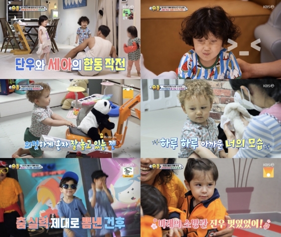 지난 29일 방송된 KBS 2TV '슈퍼맨이 돌아왔다'(이하 '슈돌') 441회는 '우리 벌써 이만큼 자랐어요' 편으로 꾸며졌다. 단연남매는 새 친구 세아와 함께 웃음 가득한 하루를 보냈고, 젠은 슈퍼맘 사유리와 설레는 어린이집 등교 준비를 마쳤다. 또한 찐건나블리는 하고 싶었던 직업을 체험하며 남매애를 확인했다.