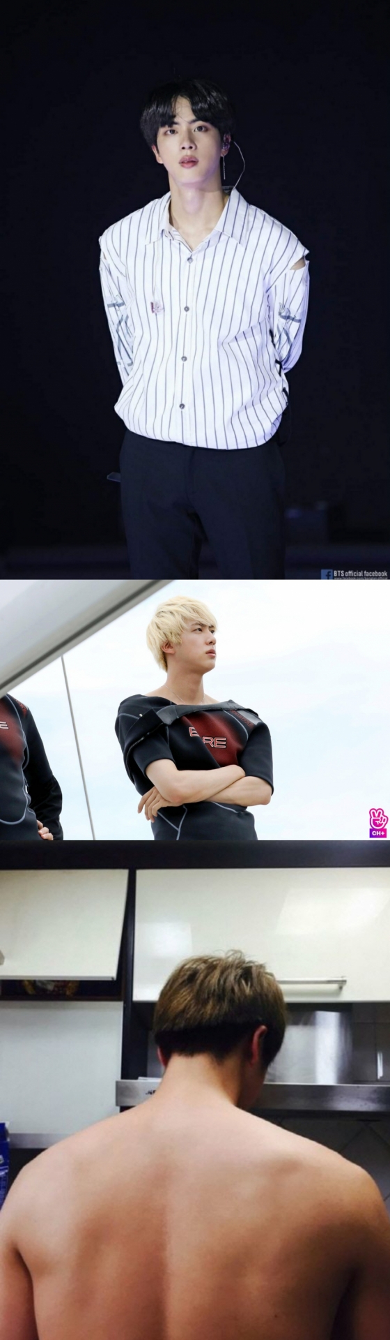 또한 지난 데뷔 7주년 기념 온라인 라이브 공연 방방콘 더 라이브에서 진은 어깨 부분이 절개된 하얀색 줄무늬 셔츠를 입었다. 절개된 어깨 부분은 진의 넓은 어깨에 셔츠가 맞지 않아 뜨거운 화제가 된 바 있다.
