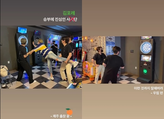 공개된 영상에는 다트 게임에 열중하는 포레스텔라 멤버들의 모습이 담겨있다. 고우림은 과녁에 정확하게 다트를 꽂으며 놀라운 실력을 자랑했다.