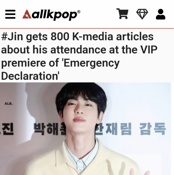최근 해외 매체 올케이팝(allkpop)은 진의 영화 '비상선언' 시사회 참석 반응을 다뤘다.