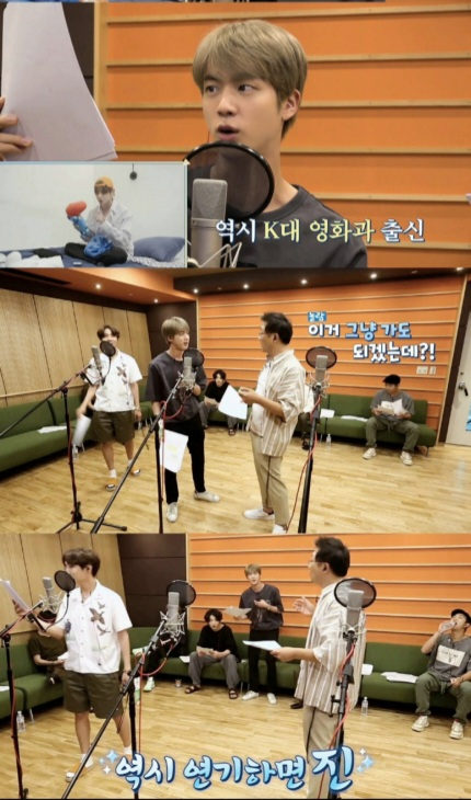 진은 '달려라 방탄'의 '달방 더빙 편'에서 영화 '주토피아'의 주인공 닉을 진지하게 소화하며 완벽하게 목소리 연기를 해 지도를 맡았던 성우 안지환의 찬사를 받기도 했다.