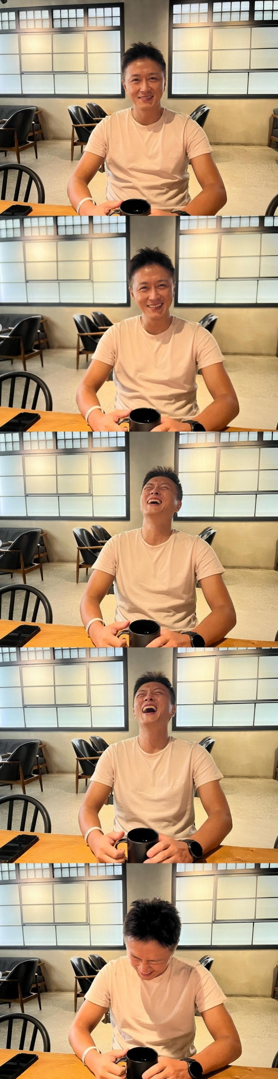 공개된 사진에는 컵을 잡고 의자에 앉아 환하게 웃고 있는 진태현의 모습이 담겨 있다. 사진 속 그는 초음파 검사를 통해 뱃속 아기를 만날 생각에 행복함을 표현하고 있다.