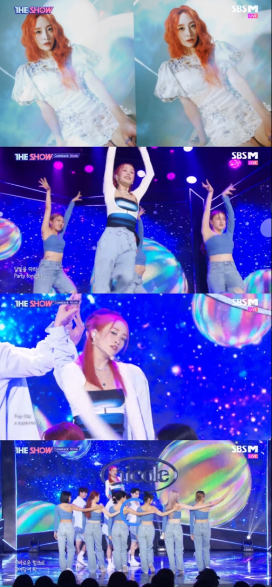 '더쇼'에서 니콜이 타이틀곡 'YOU.F.O'의 무대에서 상큼, 발랄한 매력을 뽐냈다.