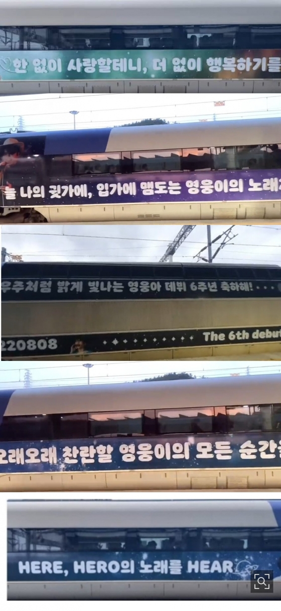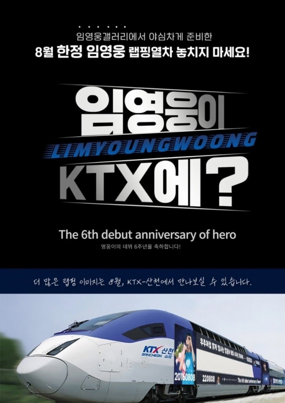 임영웅 데뷔 6주년(8월 8일)을 맞아 '임영웅 마이너 갤러리' 팬들이 KTX 외부 랩핑 기념 광고로 축하한다.