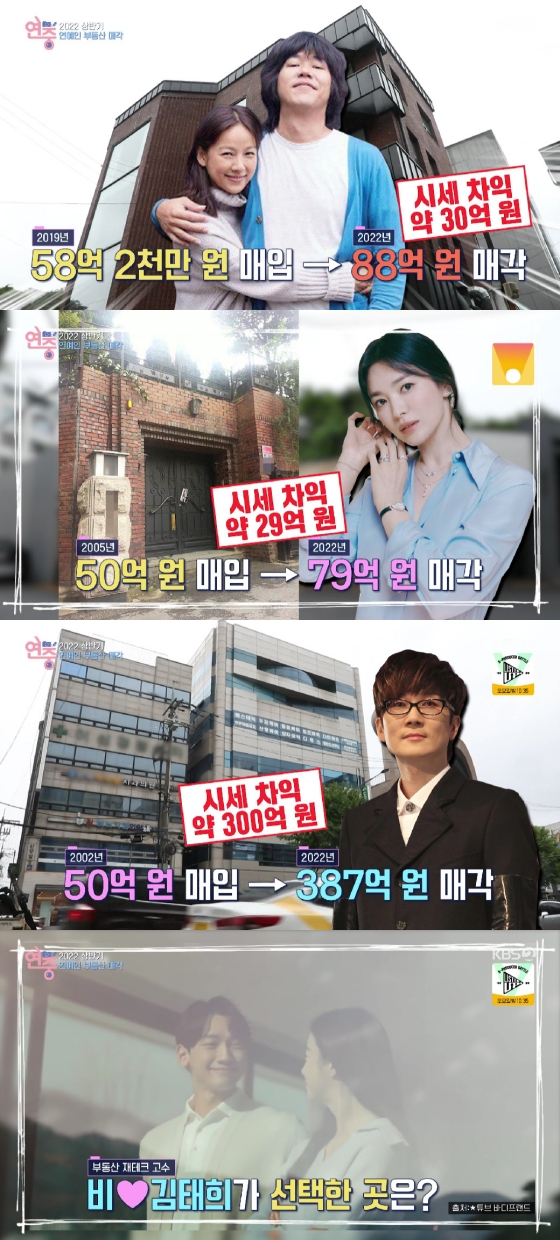 '연중 라이브'에서 '억' 소리 나는 시세차익을 얻은 이효리 이상순 부부, 비 김태희 부부, 송혜교, 서태지 등을 소개했다.