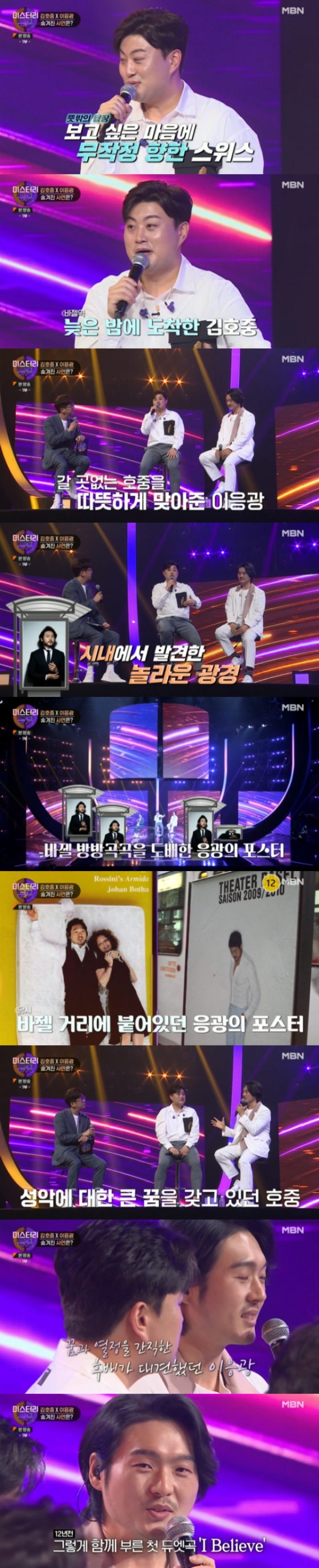 지난 8일 방송된 MBN 예능프로그램 '미스터리 듀엣'에서는 김호중이 12년 전 이응광과 친해지게 된 계기를 설명하는 모습이 그려졌다.