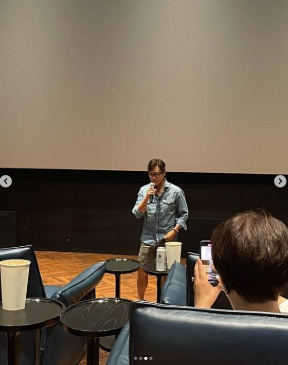 또 다른 사진에는 이병헌이 스크린 앞에 나와 영화에 대한 소개를 하는 모습이 담겨 있었다. 이병헌의 안경 쓴 캐주얼한 차림이 눈길을 끌었다.