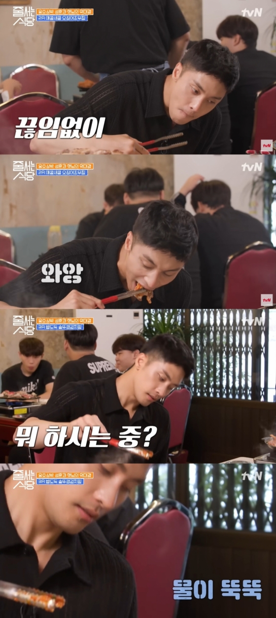 성훈은 지난 8일 '줄 서는 식당' 게스트로 출연해 박나래, 입짧은 햇님과 함께 먹방에 나섰다.