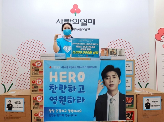 정현주 영웅나라 리더는 "임영웅을 응원하는 25명의 회원들과 함께 8월 8일 데뷔일과 12일에 시작하는 서울콘서트의 성공기원을 응원하며 이번 기부 행사를 마련했다"고 밝혔다.