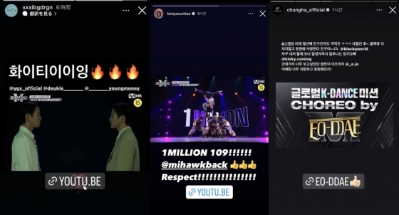 글로벌 스타들은 '스맨파' 크루를 향한 응원의 마음을 개인 SNS를 통해 드러냈다. 먼저 지드래곤은 '글로벌 K-댄스 미션'이 공개되자 자신의 인스타그램 스토리에 YGX 오피셜 계정과 멤버 계정을 태그하고, "화이팅"이라는 응원 메시지를 더했다. 이외에도 아이콘 김진환, 산다라박, 오마이걸 유아 등이 YGX를 향한 응원과 애정 어린 SNS 게시글을 올렸다. '스맨파' 출연 크루들과 다양하게 친분이 있는 청하는 위댐보이즈와 어때, YGX, 저스트 절크까지 언급, 각 크루의 '글로벌 K-댄스 미션' 평가 영상 화면과 함께 진심 어린 응원 메시지로 눈길을 끌었다.