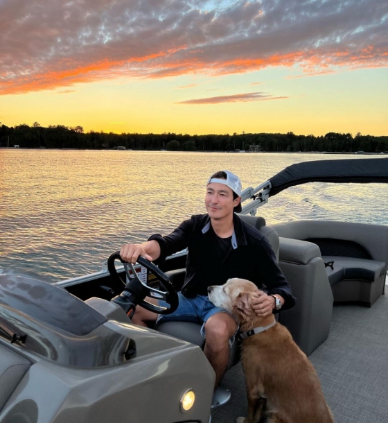 공개된 사진 속에는 다니엘 헤니가 반려견 로스코와 함께 요트로 나들이를 떠난 모습이 담겨있다. 특히 아름다운 석양을 배경으로 한 다니엘 헤니와 반려견의 화보 같은 일상이 시선을 사로잡는다.