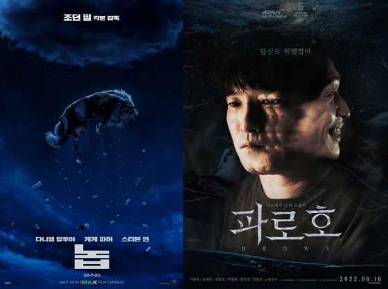 '외계+인' 1부부터 '헌트'까지. 올여름 기대 속에 한국 영화 대작 네 편이 기대 속에 개봉했고, 이제 판단은 관객들의 몫이다. 네 영화에 대한 평가와 성적은 극과 극이다. 여름 스크린 전쟁의 포문을 연 '외계+인' 1부는 겨우 150만 관객을 돌파하며 '흥행 참패'에 가까운 성적을 기록했고, 송강호부터 이병헌까지 내로라하는 배우들이 총출동한 '비상선언' 또한 기대보다 부진한 성적을 보이고 있다. 김한민 감독의 이순신 3부작 중 두 번째 작품인 '한산: 용의 출현'이 유일하게 500만 관객을 돌파하며 자존심을 세웠다. 이렇듯 '한산: 용의 출현'이 올여름 최고 흥행작으로 우뚝 선 가운데 가장 늦게 개봉한 이정재, 정우성 주연의 '헌트'도 관객들의 입소문에 힘입어 순조로운 첫 발을 내디뎠다. 여기에 조던 필 감독의 신작 '놉'이 극장가를 찾으며 대미를 장식한다.