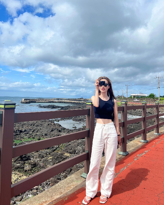 공개된 사진에는 바닷가를 배경으로 서 있는 유깻잎의 모습이 담겼다. 유깻잎은 민소매 크롭티를 입고 있다. 잘록한 허리 라인을 드러낸 몸매로 팬들의 시선을 사로잡았다.