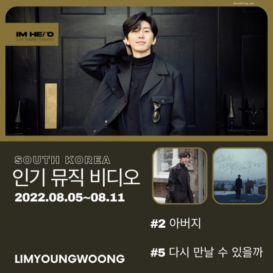8월 9일 공개된 임영웅 정규 1집 'IM HERO' 수록곡 '아버지'가 2위에 올랐으며 타이틀곡 '다시 만날 수 있을까' 뮤직비디오가 5위를 차지했다.