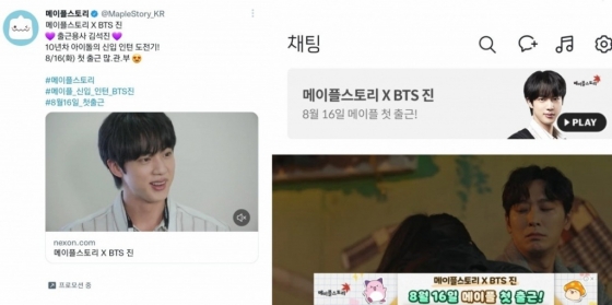 진과 메이플스토리의 진심가득한 만남 '출근용사 김석진' 컨텐츠는 트위터, 카카오톡, 유튜브등 다양한 곳에서 프로모션 중이며 팬들과 게임 유저들의 높은 관심과 기대를 모으고 있다.