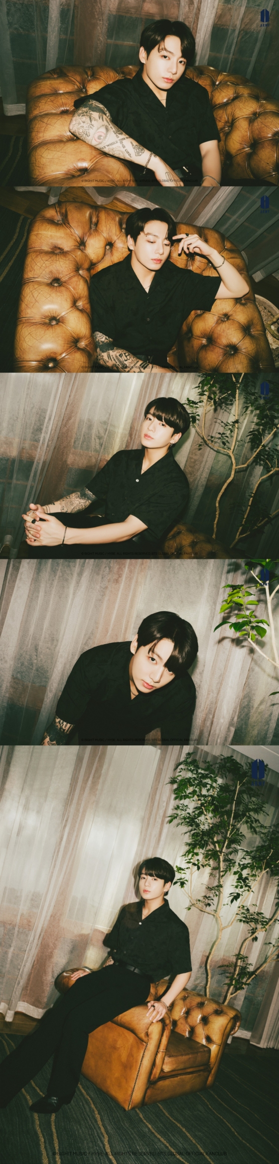 정국은 소파에 앉아 도발적인 눈빛으로 정면을 바라보는가 하면 차가운 도시 남자의 우아한 카리스마로 여심을 흔들었다.