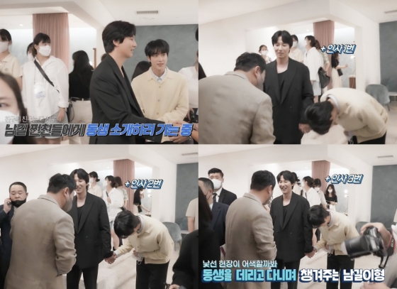 김남길은 다정하게 진의 손을 붙잡고 비상선언 출연진들에게 소개시켰다. 진은 보기만 해도 기분이 좋아지는 밝은 표정과 예의 바른 인사로 보는 이들로 하여금 흐뭇한 미소를 짓게 했다.