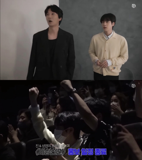 영상에는 진이 관람석에서 친한 배우 이상엽과 함께 김남길에게 손을 흔들며 응원하는 모습도 공개됐다.
