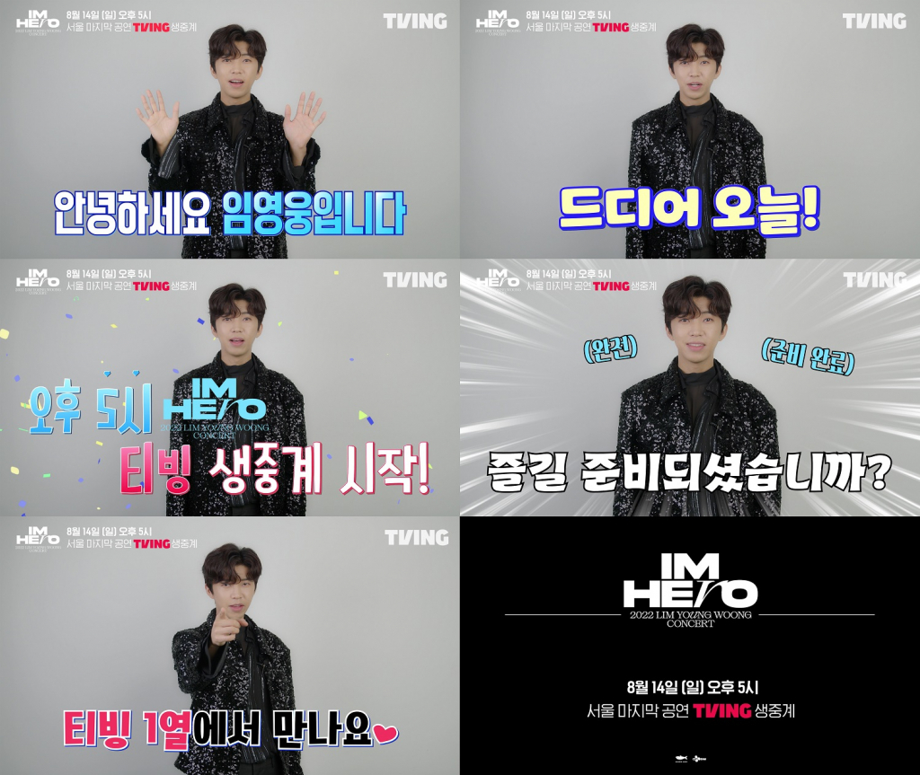 티빙에서 생중계될 임영웅의 전국투어 콘서트 '아임 히어로(IM HERO) - 서울'은 7개 도시에서 대규모로 진행되는 임영웅 데뷔 첫 단독 전국투어 콘서트의 서울 공연이다. 일찌감치 공연 표가 매진되며, 티켓팅에 실패한 팬들을 위해 임영웅이 선사한 서울 마지막 공연 티빙 생중계에 대한 팬들의 엄청난 관심이 쏟아졌다.