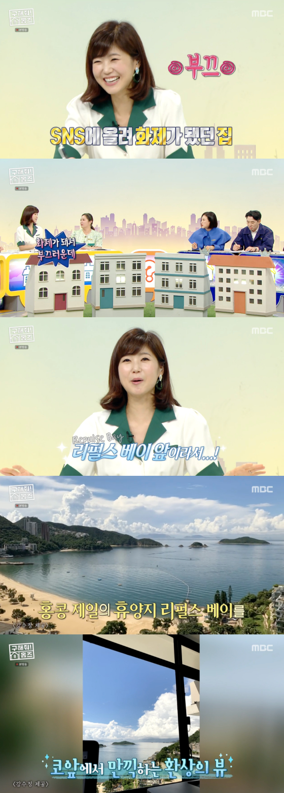 강수정은 이날 SNS에 올려 화제가 됐던 홍콩 집을 언급하며 "화제가 돼서 좀 부끄러운데 그냥 리펄스 베이 앞이다"며 웃었다. 강수정은 이어 "아파트가 제 나이랑 똑같다"고 덧붙였다.
