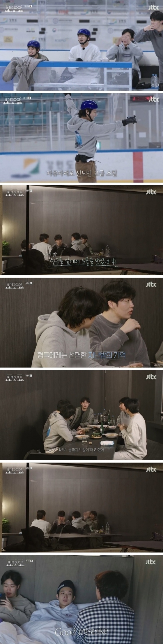 스케이트장에 도착하자 스케이트를 타자고 제안한 뷔가 가장 서툰 실력을 가진 것으로 드러나 웃음을 선사했다. 몸이 말을 안 듣는 뷔를 위해 최우식이 밀착과외를 펼쳐 다정한 모습을 연출하자 형들은 "쟤들 왜 저러니 둘이 혹시 사랑하니? 꼴불견인데"라고 말해 폭소를 자아냈다.