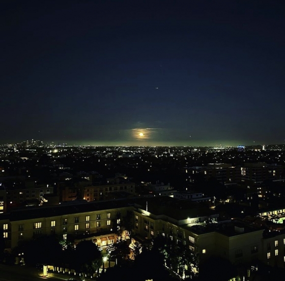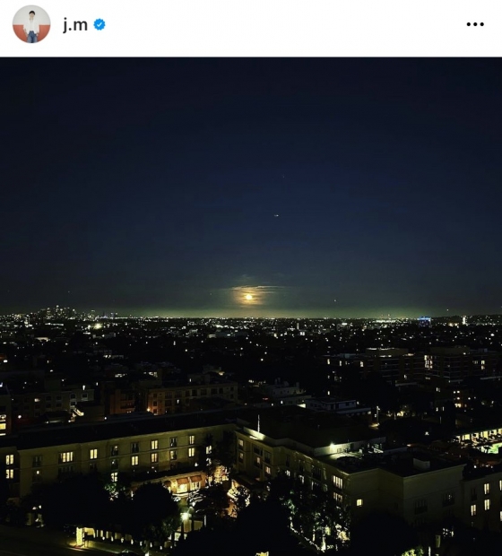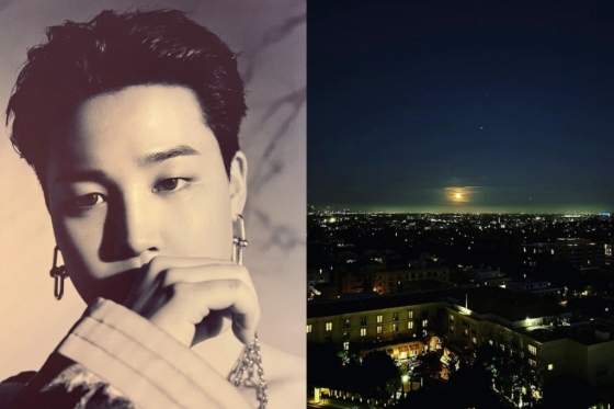 지민은 8월 15일 자신의 인스타그램에 아름다운 밤하늘 그림같은 도시의 야경이 담긴 사진을 공개했다.